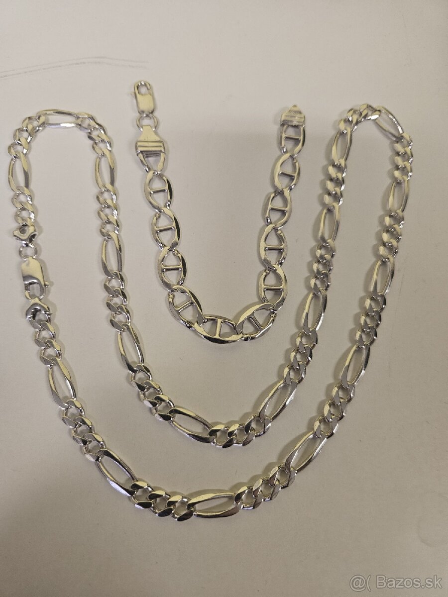 Predám striebornú retiazku 39.80g 60cm strieborný náramok 13.9g 20cm. Predám len spolu.