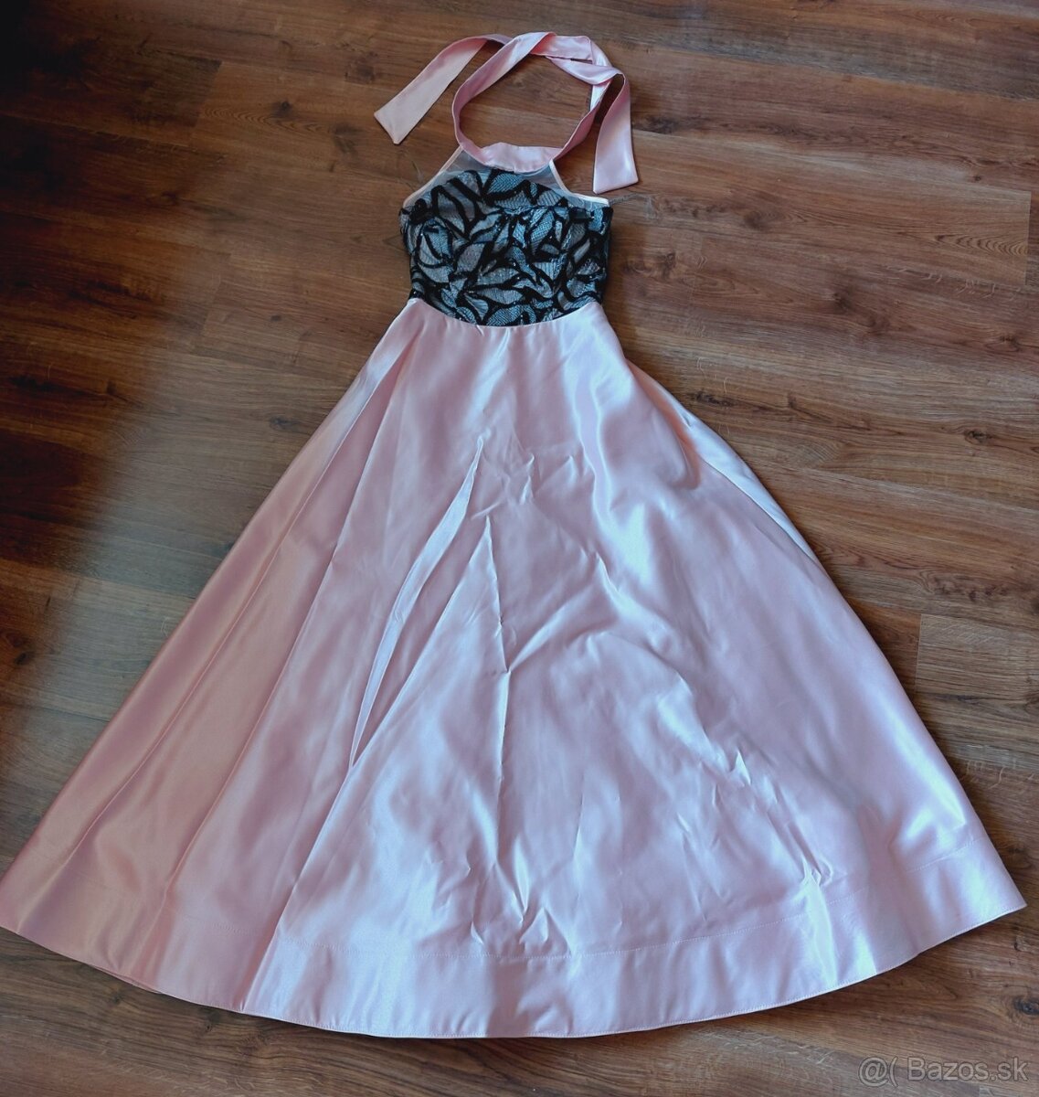 Predam raz oblecene, satenove spolocenske saty zn. Fervente, velkost 36. Viazu sa okolo krku, maju vsitu podprsenku a dvojvrstvovu spodnicku, vzadu na zips. Dlzka cez stred od krku 140cm, pas 32cm.