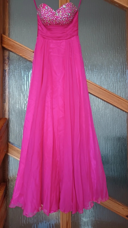 Krásne šaty bez ramienok, oblečené 2x, majú akoby saténovú spodničku, korzet sa dá na chrbáte prispôsobiť viazaním. Žiaľ, odpadlo pár flitrov a kamienkov z vrchnej časti a vzadu sa pristúpilo podpätkom a kúsok vrchnej látky sa roztrhlo, je to nafotené. Nebyť týchto chýb, šaty sú v skvelom stave a veľmi pekne sedia na postave. Pás má 32cm, bočná dĺžka 122cm.... platba vopred na účet