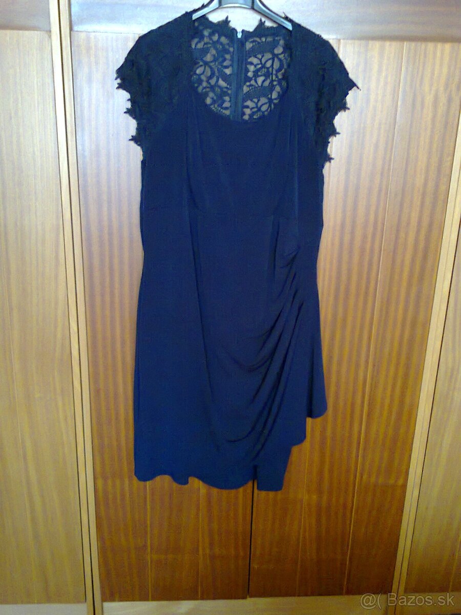 Predám skoro nové tmavomodré šaty, vhodné na slávnostné príležitosti. Šaty sú elastické, kombinované s kvalitnou čipkou. Boli oblečené iba trikrát. Šaty sú podšité a s bočným riasením. Veľkosť č.42. Presné miery: šírka v páse 94 cm, šírka cez prsia 100-102 cm, dĺžka šiat 99 cm. Zapínanie vzadu na zips. Značka BONPRIX. Cena 6 euro + poštovné.