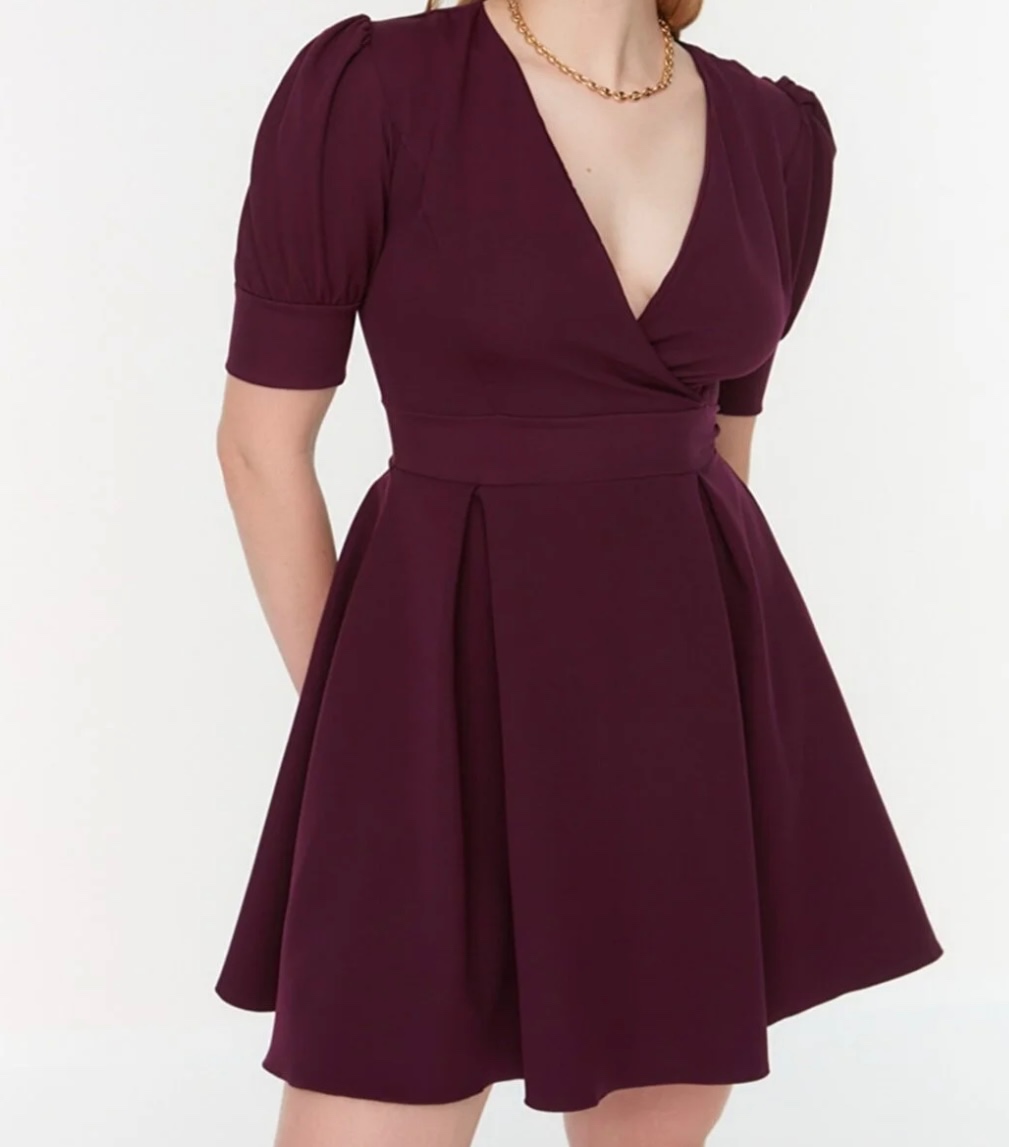 Šaty sú nové, len raz oblečené. Sedia ako XL aj ako L. Boli raz oblečené. Farba sedí na prvých dvoch fotkách (niečo medzi bordovou a finálovou). Výstrih na šatáych je trochu zašitý- čiže nie je otvorený tak ako na prvej fotke.