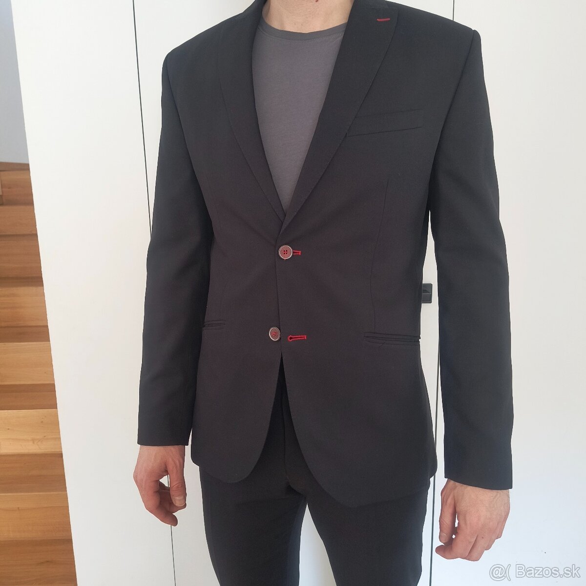 Predám čierny oblek,tri krát použitý,moja výška 188 cm skôr na štíhlu postavu.Povodna cena 179 eur.