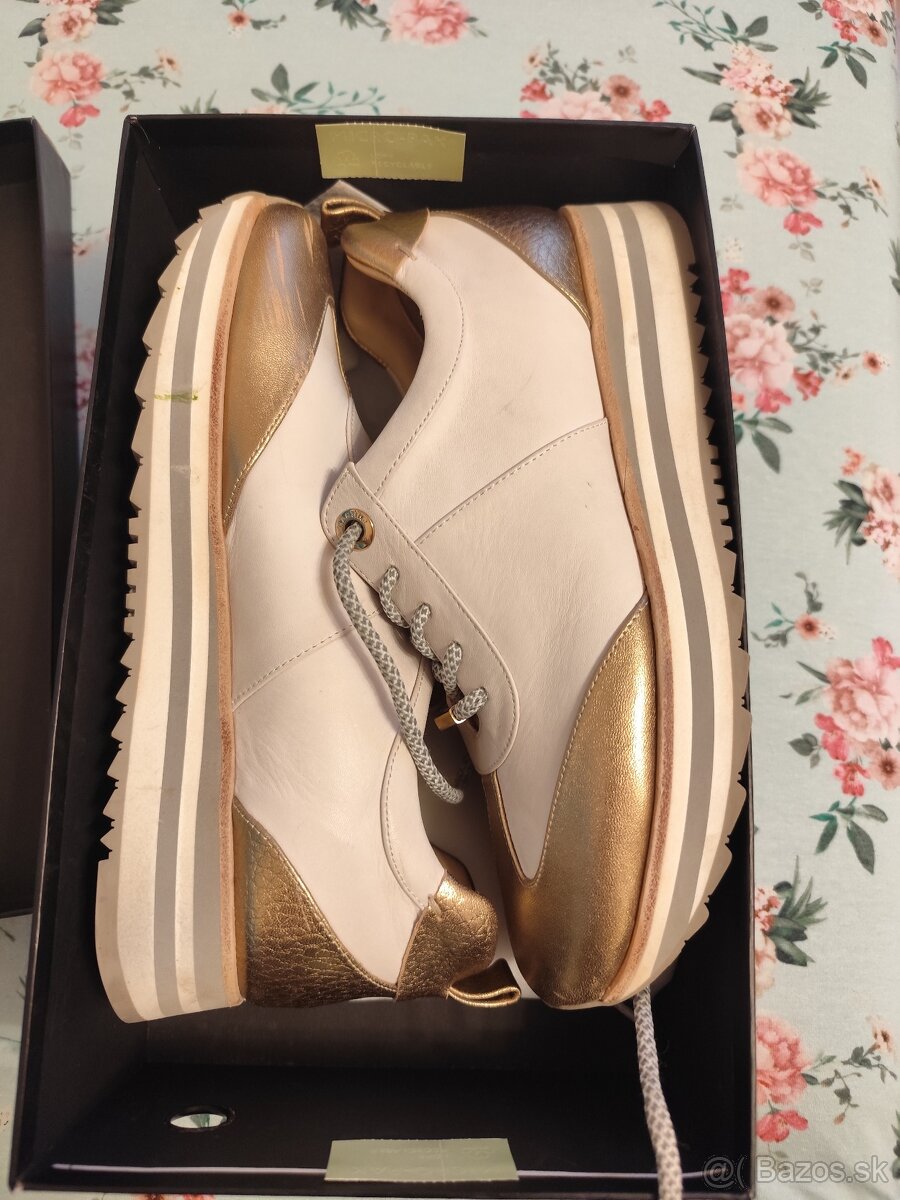 Predám kožené dámske tenisky, koža je aj vo vnútri, sú béžová so zlatou veľ. 40. Osobne odber v Trnave. Nosenie 3 krát, potrebujem ortopedické topánky, preto predávam.