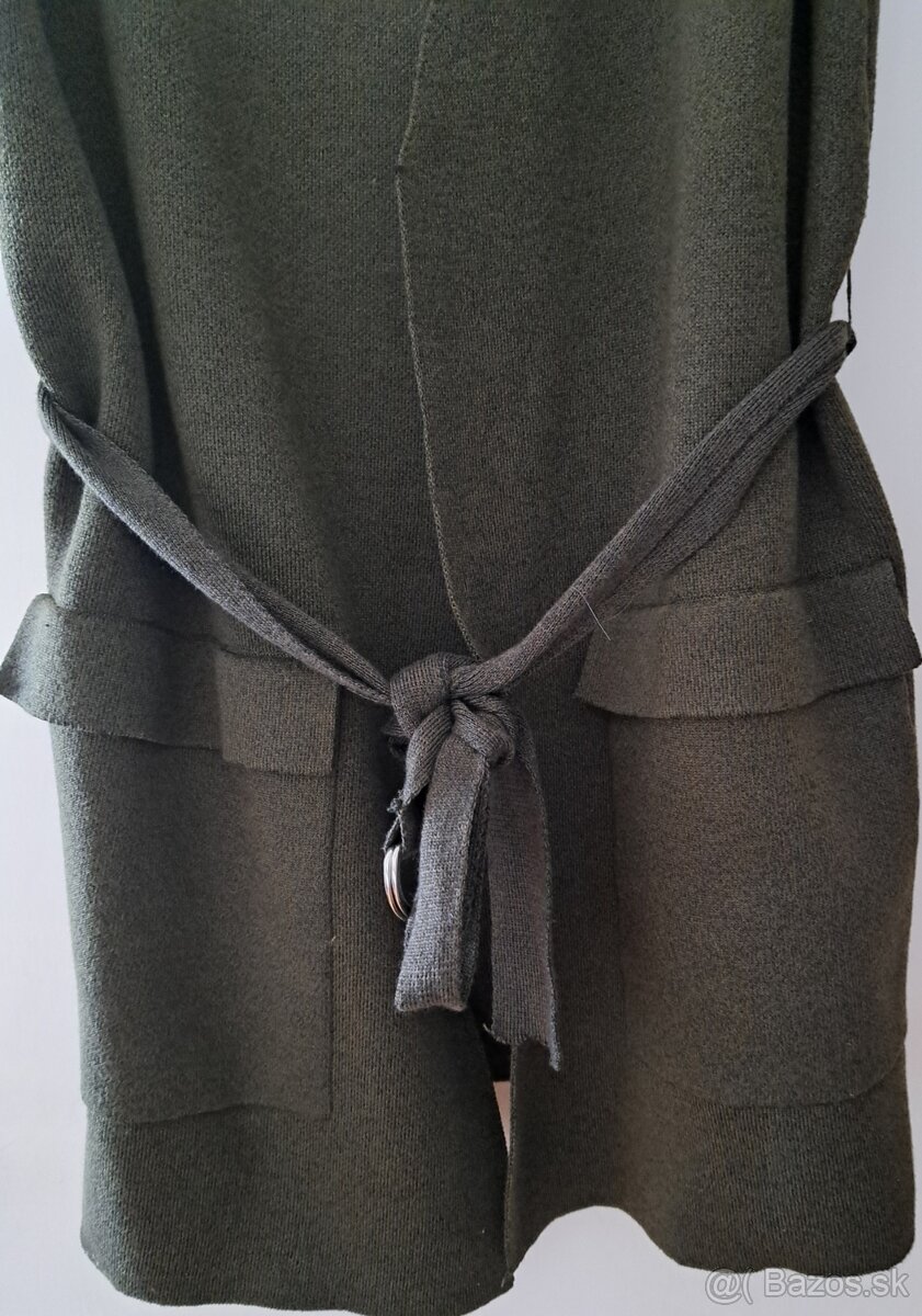 Predam teplu zelenu dlhu vestu, Stradivarius, velkost M, 38, 2 x vrecka velke klopami, opasok, dlzka 83 cm, cena 15e