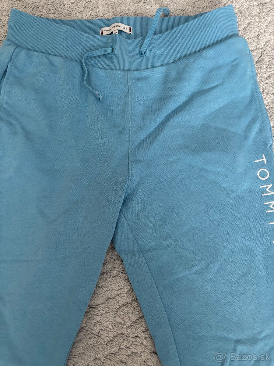 Krásne bledomodré tepláky, malo nosene, veľkosť 164.