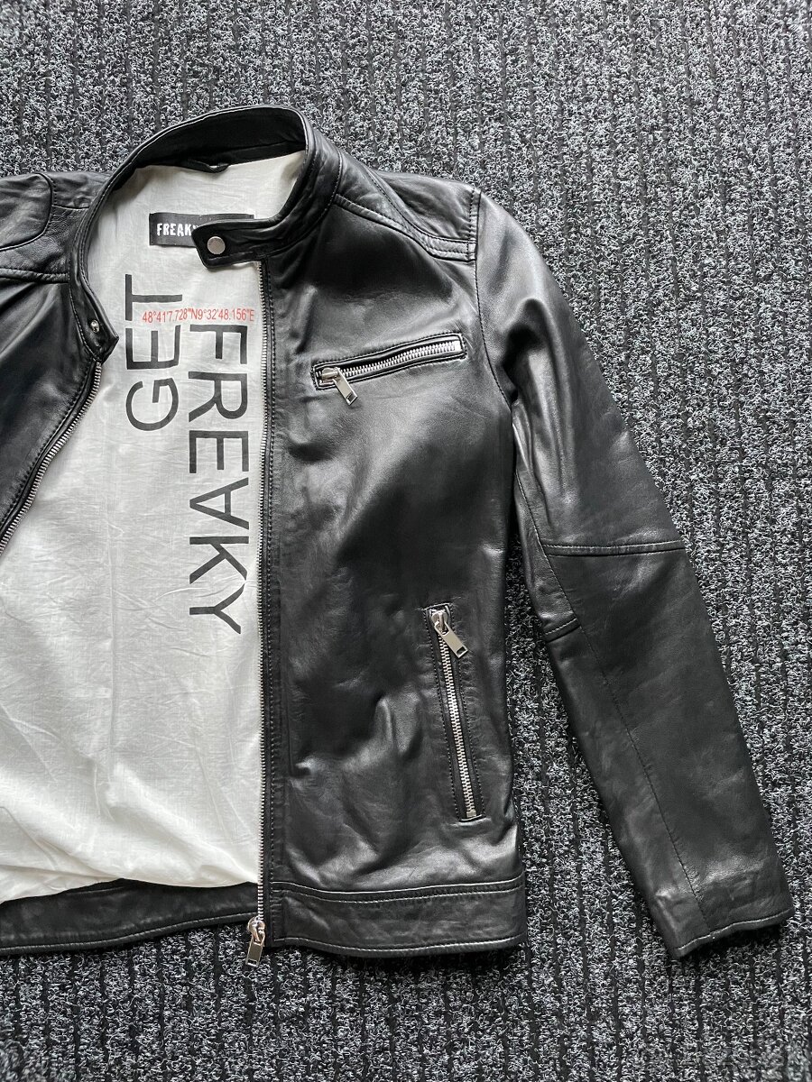 Predám túto krásnu štýlovú,úplne novú koženú bundu zn.Freaky Nation čiernej farby,veľkosť S(ale je ro väčší strih,aj pre M - kových).. rozmery sú na fotkách. Bunda nebola nikdy nosené.