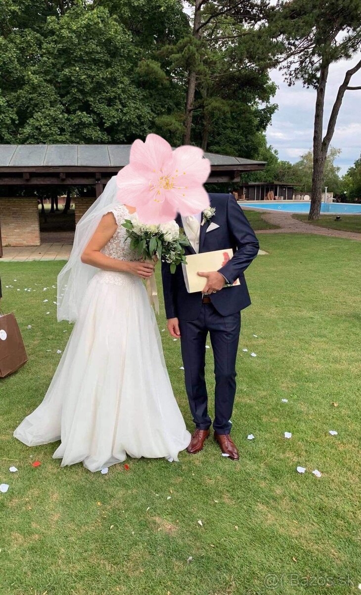 Predám 1x oblečené svadobné šaty 2v1 s odopínateľnou tylovou sukňou veľkosti S/M na výšku cca 171cm + 9 cm podpätky. Pod tylovou sukňou je jednoduchá sukňa v zlatej farbe. Šaty sú na zips, čiže veľmi jednoduché obliekanie. Ušetríte, keďže je možné ich využiť ako svadobné aj popolnočné šaty. K šatám je aj závoj. Šaty boli šité na mieru (júl 2020) z kvalitných materiálov a pôvodná cena bola 600Eur.