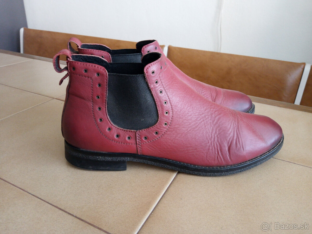 Predam damsku elegantnu kozenu obuv ECHTES, vel.41, vnut.dlzka je 27cm. Topanky maju pruzne gumove podrazky, v clenkovej casti gumovu textiliu. Obuv je lahka a pohodlna, bola malo pouzivana, cena je 10Eur + post.4,90Eur.