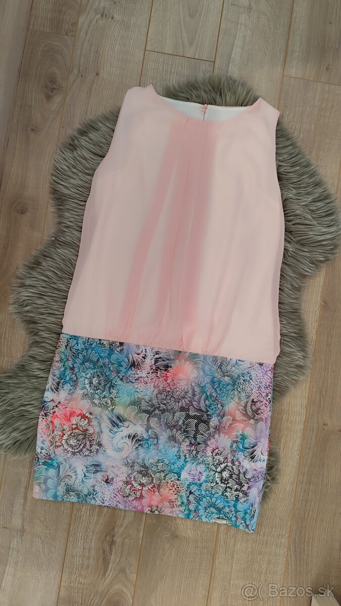 Šaty sú mierne nad kolená pri výške 165 cm, vzadu sa zapínajú na zips, mierne elastické.