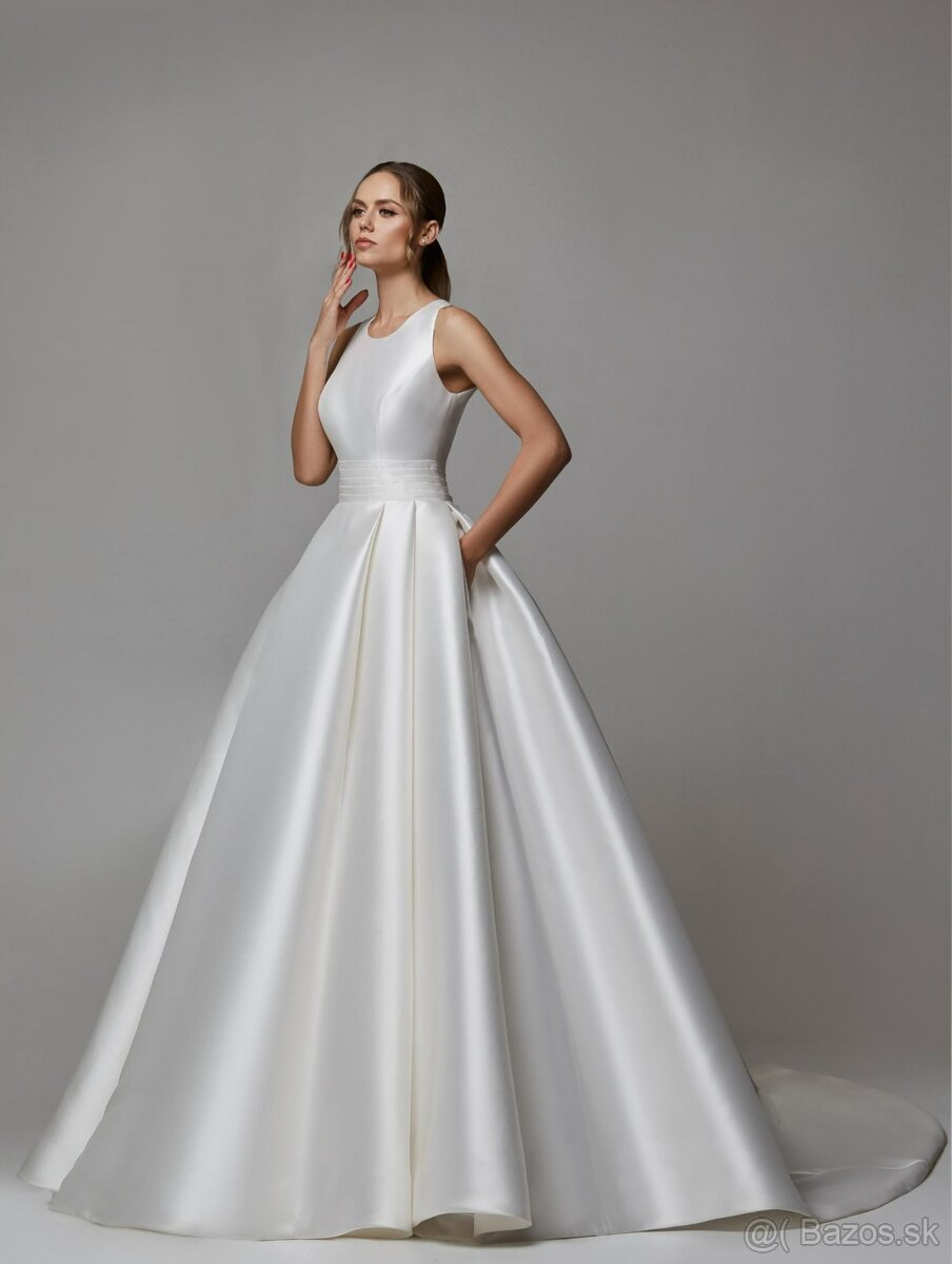 Svadobné šaty z padavého saténu - [23.2. 2026]Ponúkam na predaj krásne svadobné šaty, sukňa z padavého saténu, luxusne zdobený korzet, veľkosť 36/38
