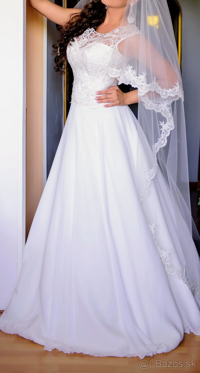 Predám svadobné šaty 1xpoužité, farba Ivory, veľkosť 40/L, závoj spodnička s kruhom,