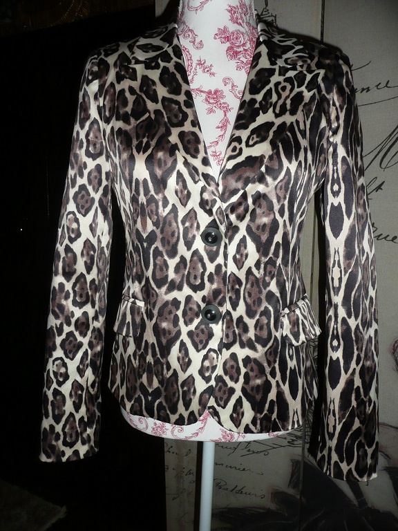 Dámske krásne nové podšité sako s leoparďou potlačou a jemným elegantným saténovým leskom, sako je v 100%-nom stave a je to klasická veľkosť
