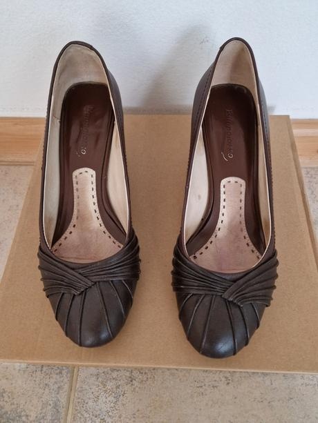 Kožené talianske topánky na 6cm podpätku, výborný sklon. Vnútorná dĺžka 24cm, vložená moja kožená vložka. Jemné znaky nosenia. Vhodné pre nie úzku nozku, okrúhla špica.