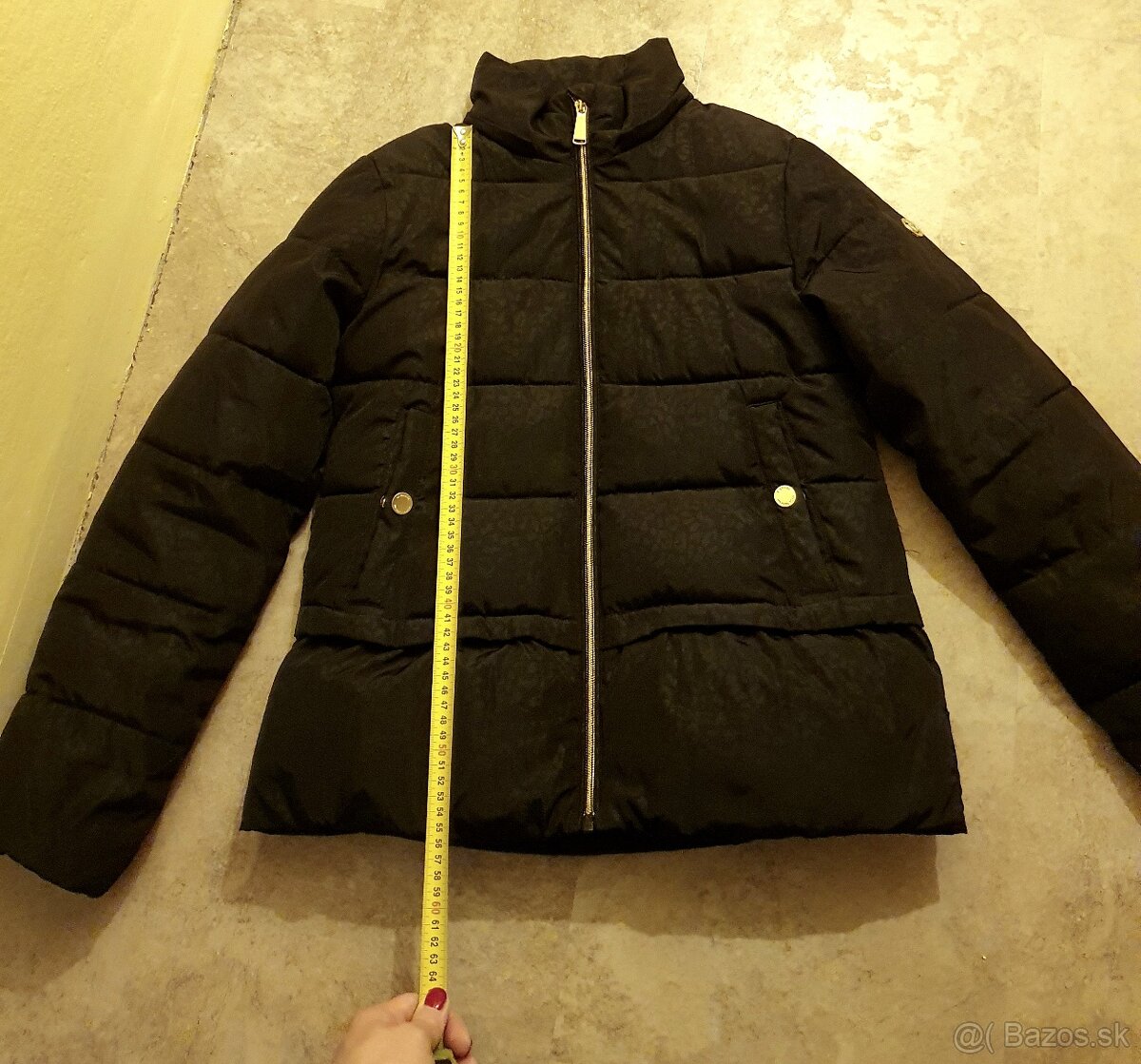 Predám túto čiernu zimnú bundičku zn. MICHAEL MICHAEL KORS s prvkami v zlatej farbe, bežná predajna cena 260-400eur, kúpená z druhej ruky za 140eur, no nesadla mi veľkosť, písaná je XL, no reálne je to tak M alebo S. Bežne nosím veľ.L (napr.pri značkách Mohito,Orsay,Desigual) no nezapnem ju cez hrudník (100cm). Cez pas (90cm) ju zapnem, ale tesne. Takže ak v zime pod ňu ide ešte sveter, tak môže sadnúť kľudne S. K bunde chyba kapucňa, tu som si nechala k inej M.K. bunde, preto cena znížená,no zips nie je vidno je krytý,vid.foto. Posielam po platbe na účet. Nepremeriavam. Ďakujem