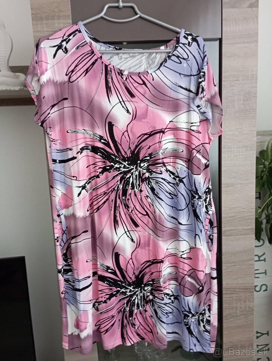 Predám šaty 3XXL, raz oblečené. Rozmery dl.91cm, boky 110 cm, prsia 106 cm.