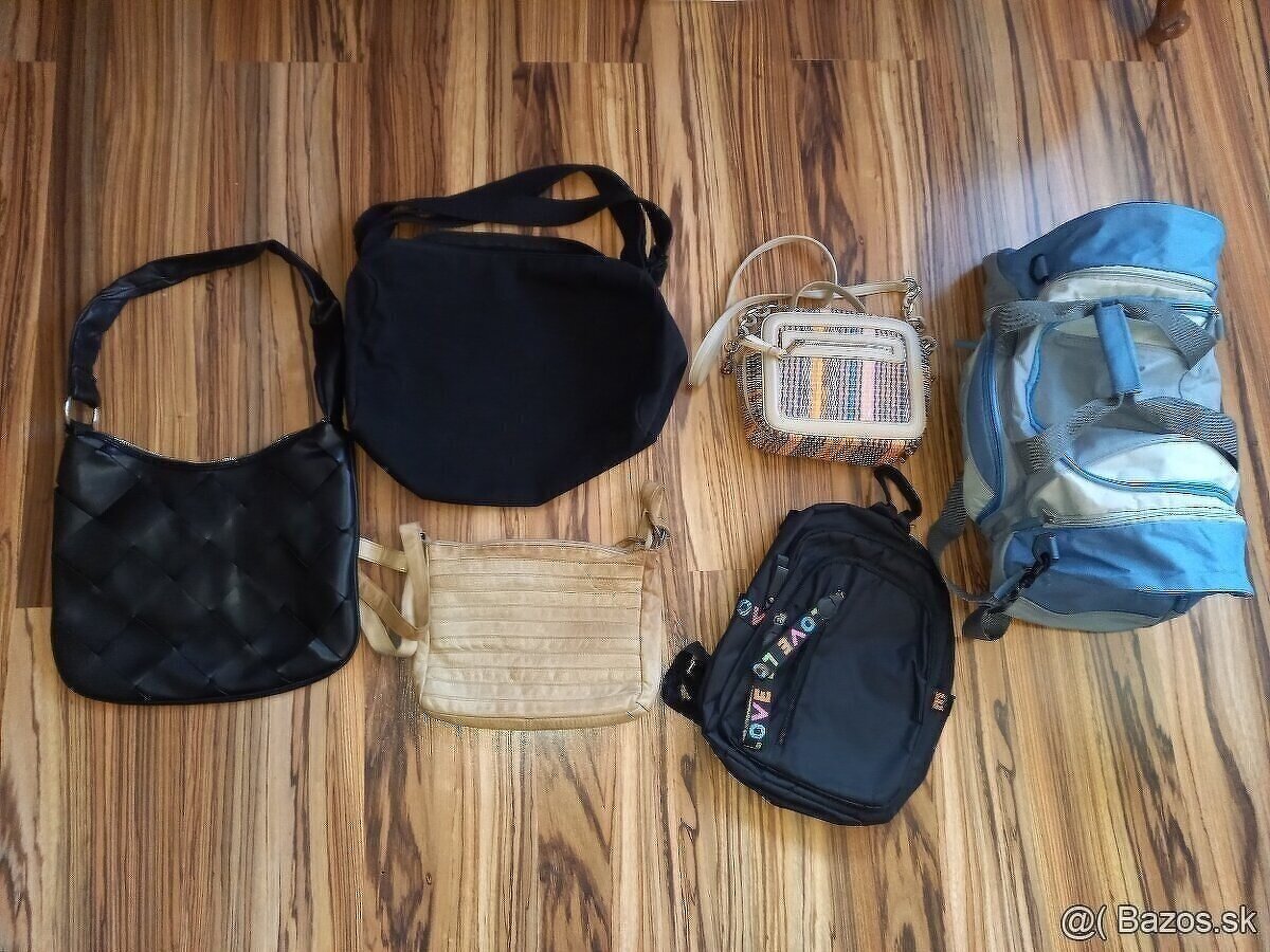 Predám kabelky 10 ks, cestovná taška, ruksak všetko spolu 12 ks 35€.