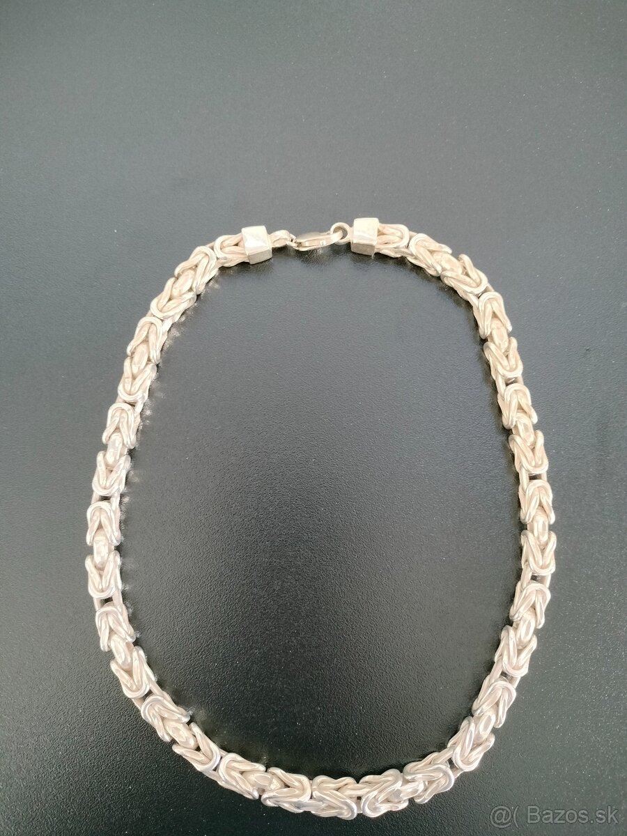 Predám mohutnú striebornú reťaz, hranatý kráľovský vzor, váha 160gr, dĺžka 48 cm.