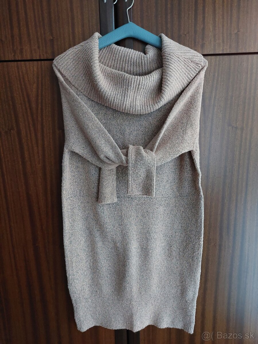 Pohodlné, pletené šaty s veľkým rolákovým golierom, staroružovej melírovanej farby, veľkosť 40/42; šírka 50cm, dĺžka 95 cm