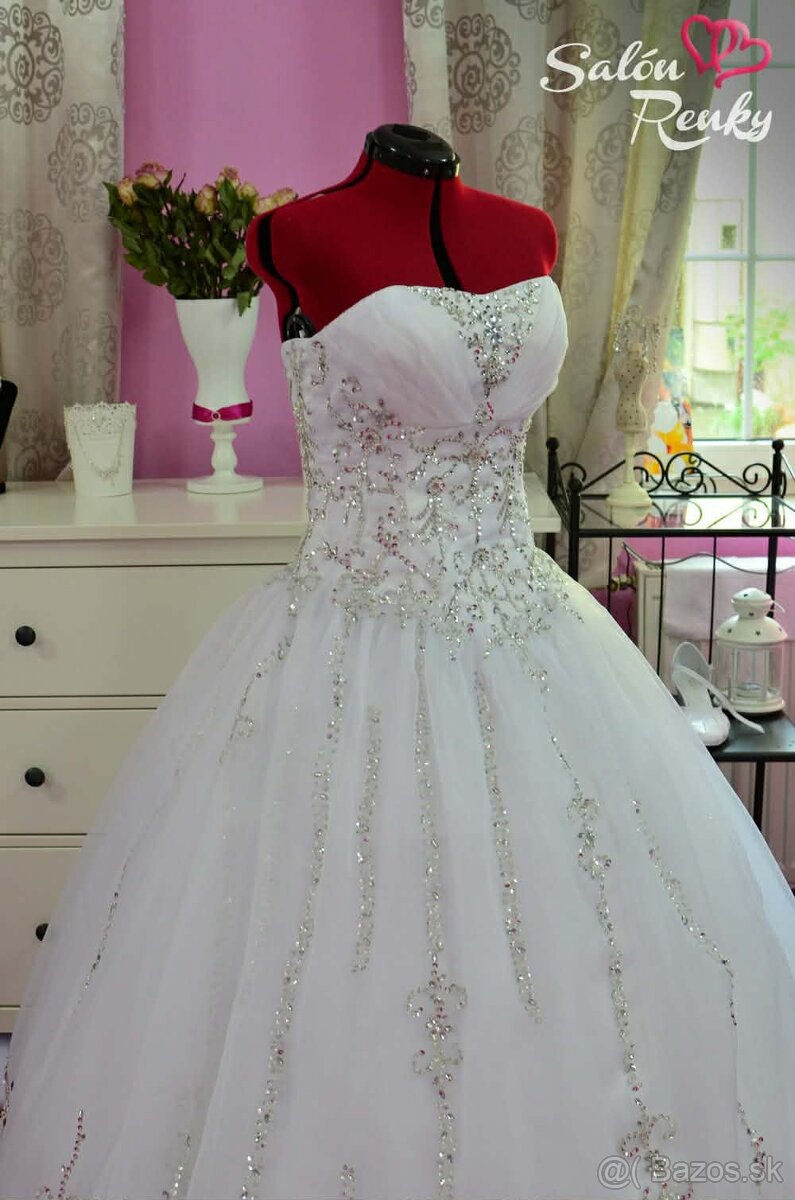 Predám tieto krásne a pohodlné princeznovské svadobné šaty,šité na mieru,oblečené len 1 x.