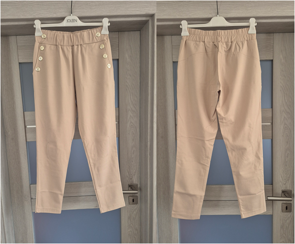 Dámske elastické nohavice v.40/42, d.92cm, pás 68-88cm, 70% viskóza, 30% polyester, nenosené, 25€+poštovné.