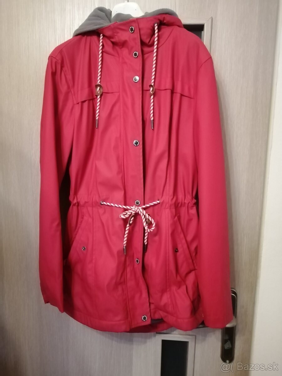 Predám prechodnú červenú bundu, vhodnú aj do dažďa, veľ. 36, nenosená, dľžka bundy je 80 cm, v páse má šnúrku, je podšitá flisom, dľžka rukáva je od krku 76 cm. Farba je výrazná červená.