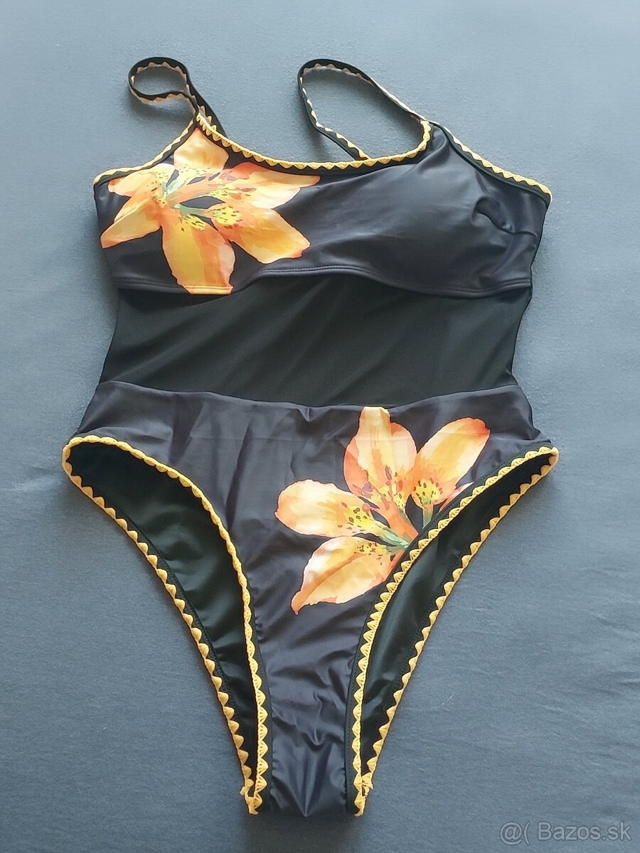 Krásny žiarivý vzor cez stred predelené sieťkou, zoštíhlujuci efekt, podprsenkova časť vystužená,ramienka sa dajú prispôsobiť
