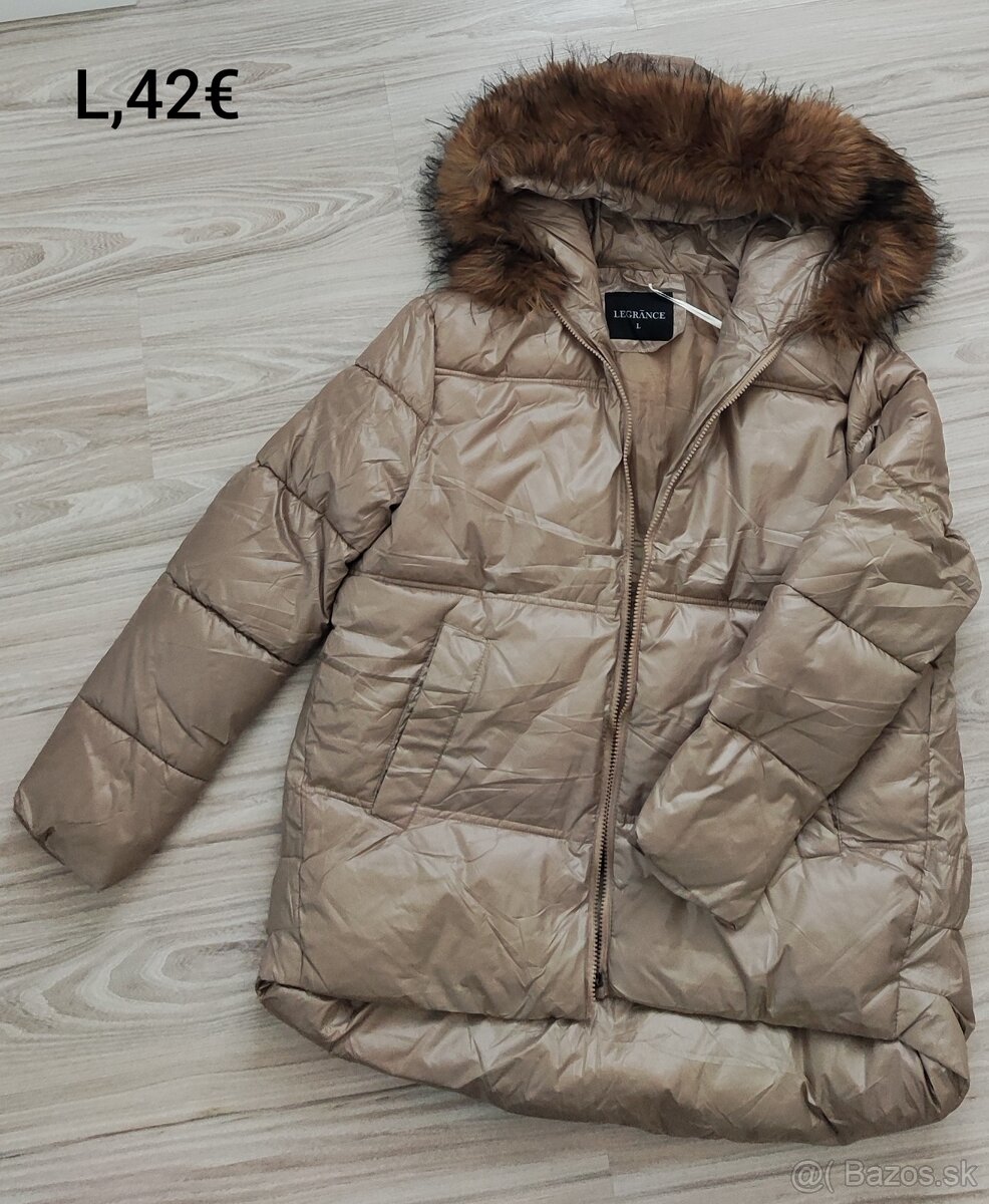 Béžová dlhá bez kapune vo veľkosti M, cena 50 eur, nová.