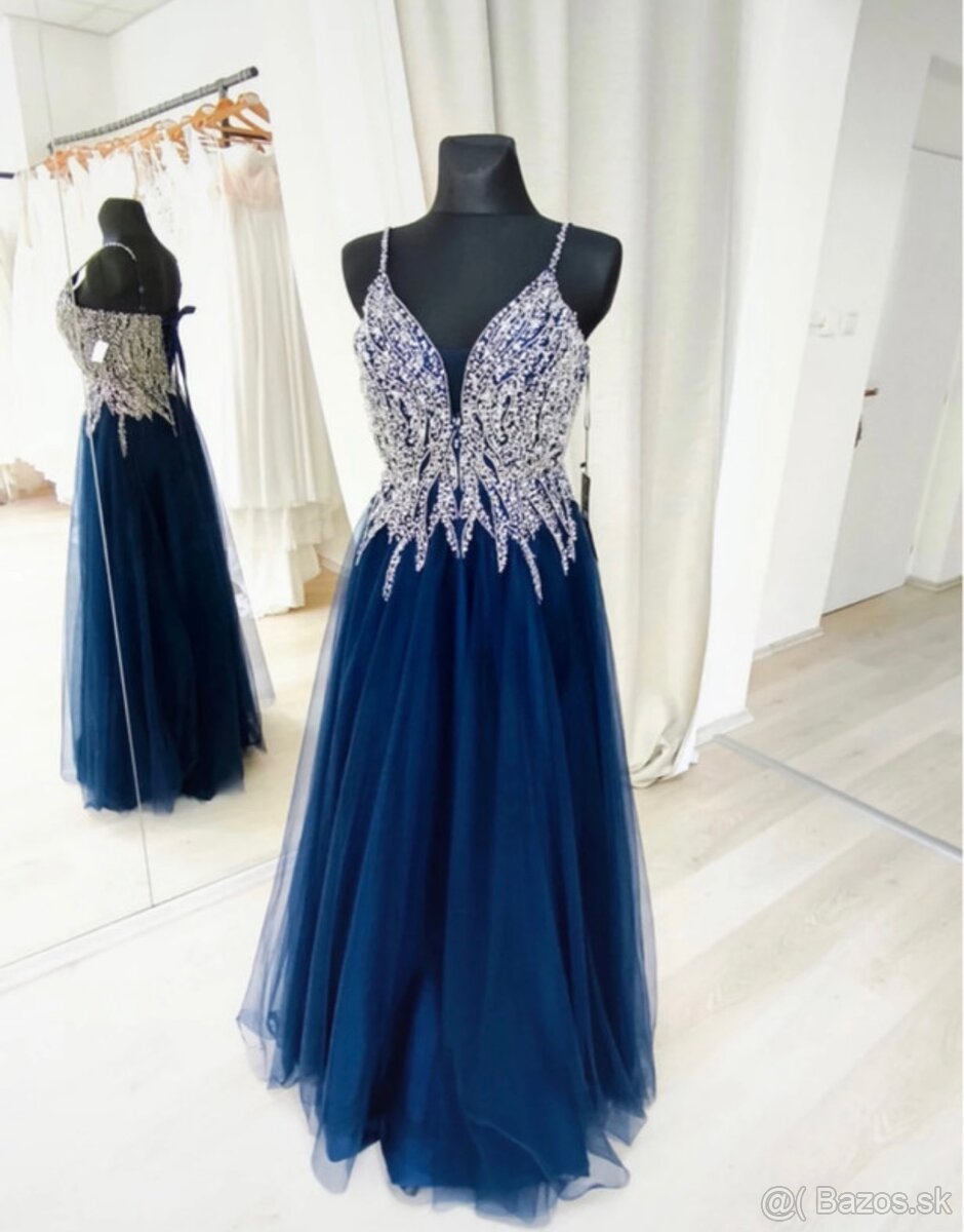 Spoločenské / plesové šaty - [27.2. 2026]Spoločenské / plesové šaty, Predám jeden krát oblečené šaty sú v top stave. Krásna modrá farba s odleskami momentálne velmi trendy. Veľkosť uvedená M/L.