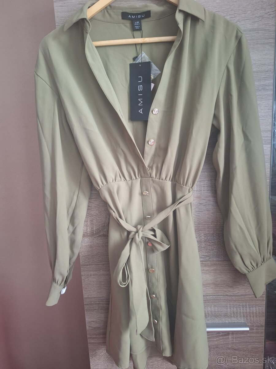 Na predaj dámske košeľové šaty alebo ako predĺžená tunika,olivová farba,veľkosť 34,ešte s vysačkou