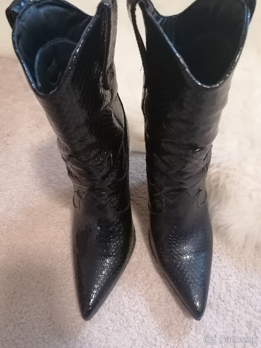 Kotníkové topánky - [21.2. 2026]Predám čierne členkové topánky značky Claudio Rossetti, veľkosť č.38, výška opätku 8,5 cm, cena 10 €+ poštovné.