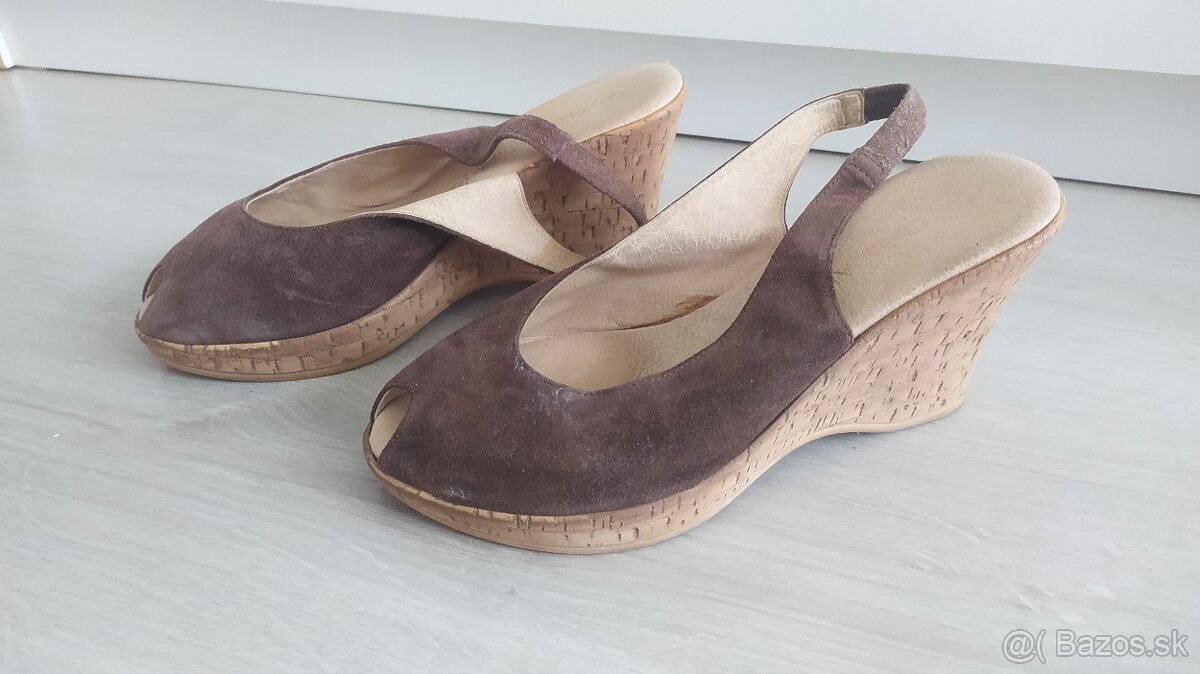 Dámske kožené sandále na platforme. Veľ 37.