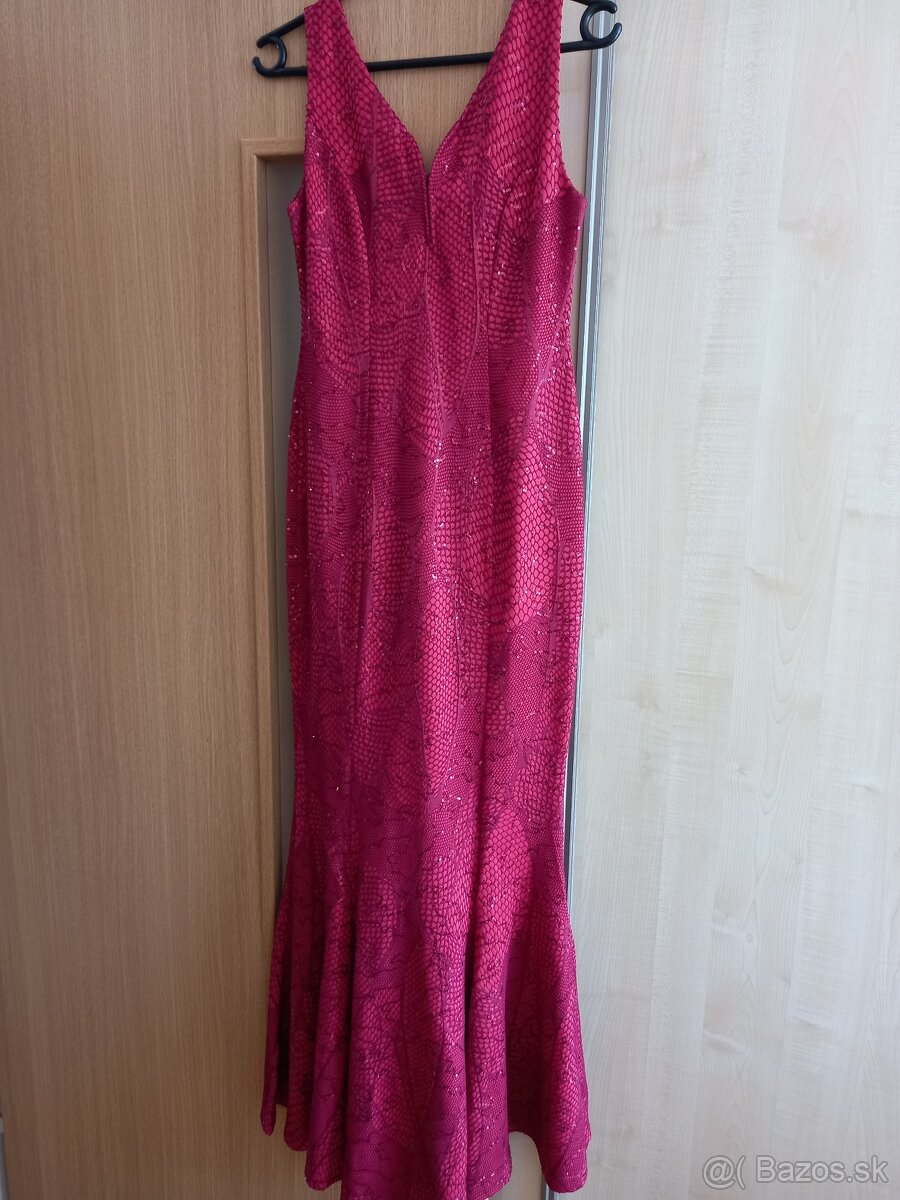 Plesové šaty bonprix veľ č.38.Látka je kvalitná pevná,elastická,decentne trblietavé nepriesvitné.Pekne ukáź na postave.V zadu na zips Dĺžka 147cm.