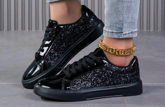 Predám čierne trblietavé lesklé tenisky ... Veľkosť 40 ( 26,1cm dĺžka)