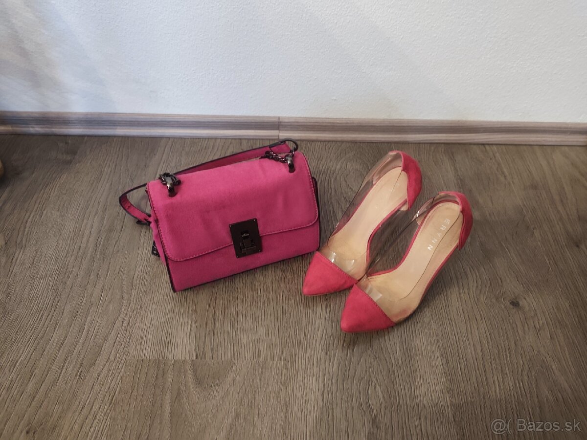 Topanky+kabelka.Chvilku nosene.V dobrom stave v peknej ruzovej farbe.Topanky velkost 36.Kabelka. Vyska 17.5 cm, sirka 20.5 cm a hrubka 9 cm.