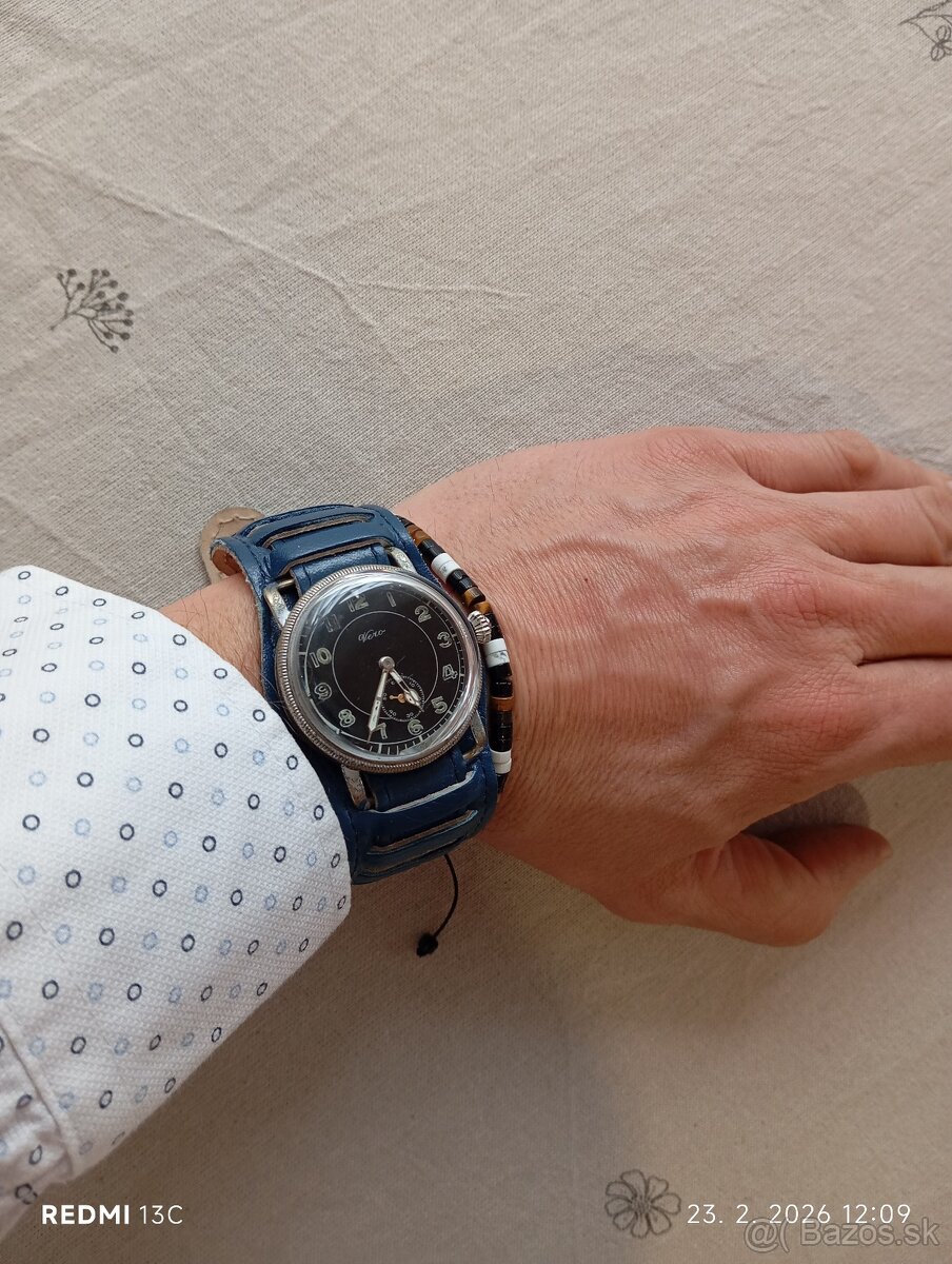 Dobrý deň. Ponúkam letecké - vojenské pánske hodinky. VERO. Krajina pôvodu Švajčiarsko. Funkčné. 40-50 siate roky. V kruhu zberatelou su žiadané. Takže aj ako investícia do budúcnosti. Krásne tikajú. Remienok nový. Vzhľadom na vek a povahu, pri natočení tolerancia +/- min. Mal som ich zopár x na ruke a šliapali bez problému .169€ ďakujem Milan