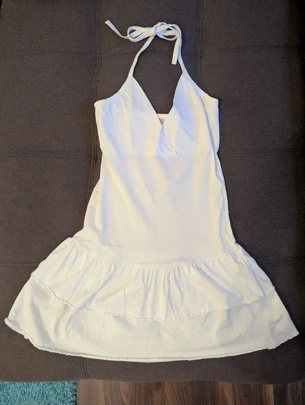 1. biele šaty na ramienka zn. Esmara - veľkosť uvedená 40/42, ale sadnú na M/L. cena 6€.