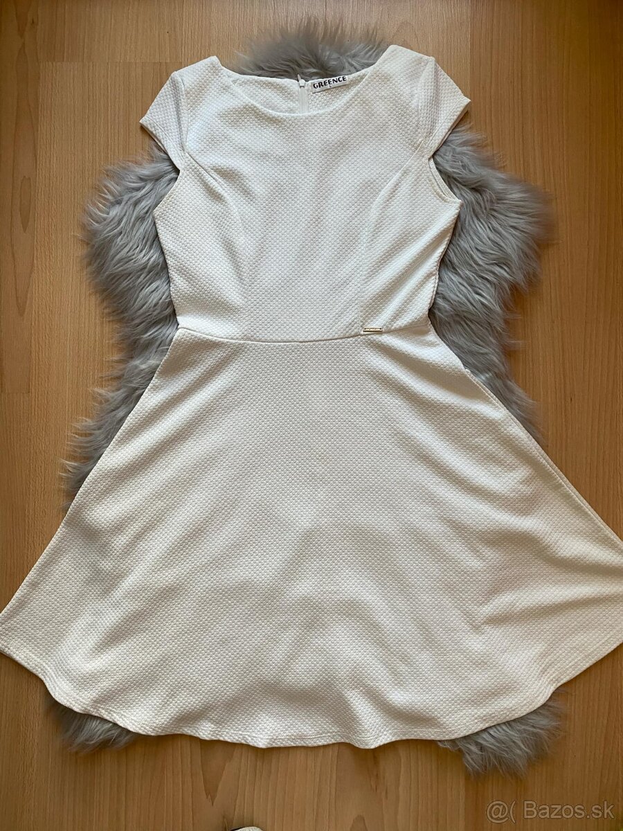 Biele šaty - veľkosť uvedená L, ale sadnú na M, aj menšie M, cena 10€.