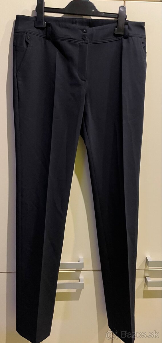 Ako nove, krasne padave cierne elegantne nohavice, velkost 40. Maju malu chybu krasy, zo zadu pustil sev, treba zasit.