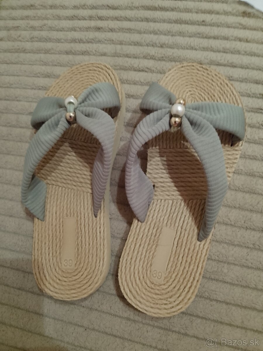 Predám úplne nové šlapky omylom objednané 2 kusy.Su veľmi pekne ľahučké mäkke na nohe ich ani necítiť.Čislo je 39 ale sedia 38/39,vnútorná dĺžka slapiek je 25 cm.