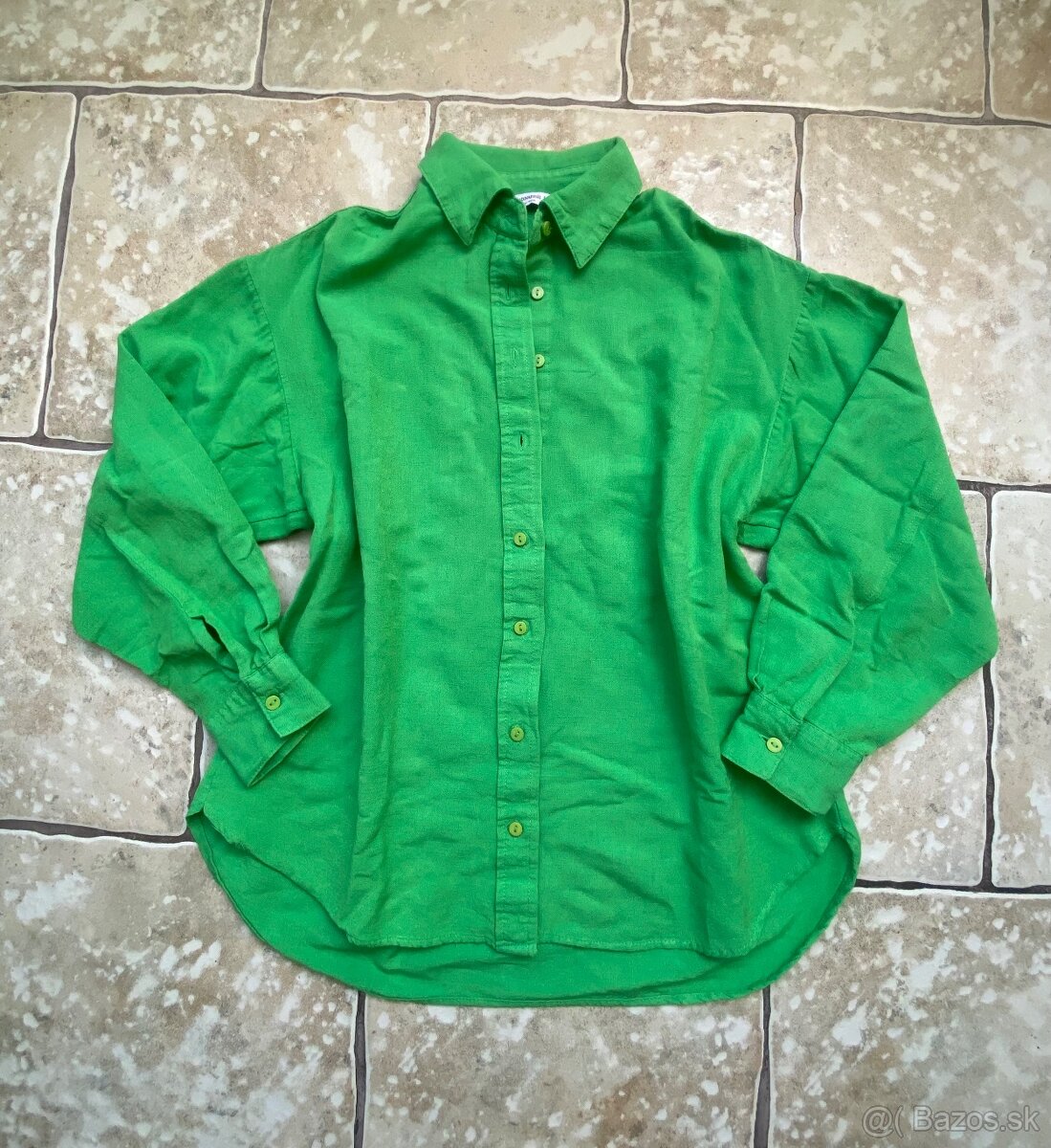 Na predaj zelená košeľa Stradivarius, veľkosť XS, sadne aj na XS-S. Kúpená na inej predajnej platforme, ako málo nosená, materiál predávajúcou uvedený ako bavlna a ľan. Mnou nenosená, nesadla mi. Bežné známky nosenia, bez poškodení. Super letný kúsok :).
