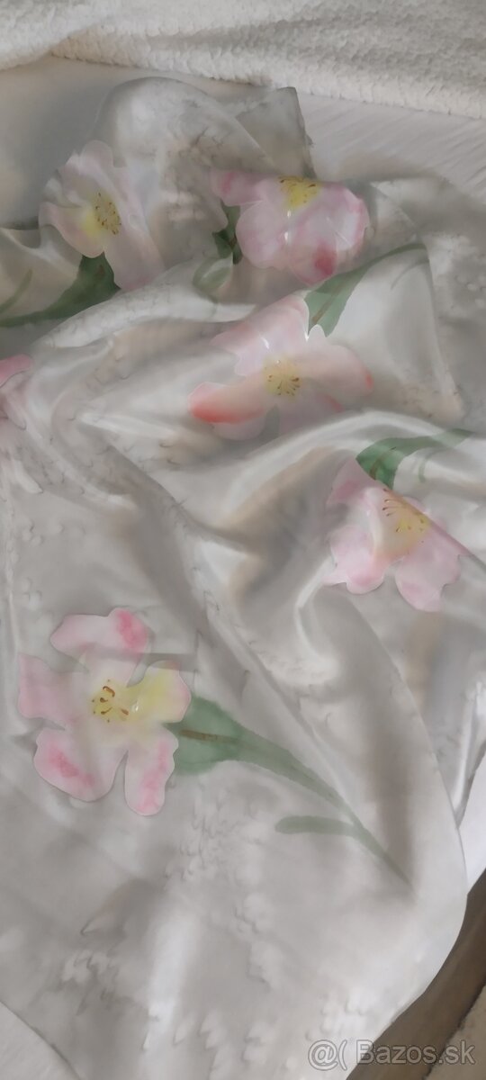 Ručne maľovaná hodvábna šatka kvety, pravý hodváb 90*90 cm
