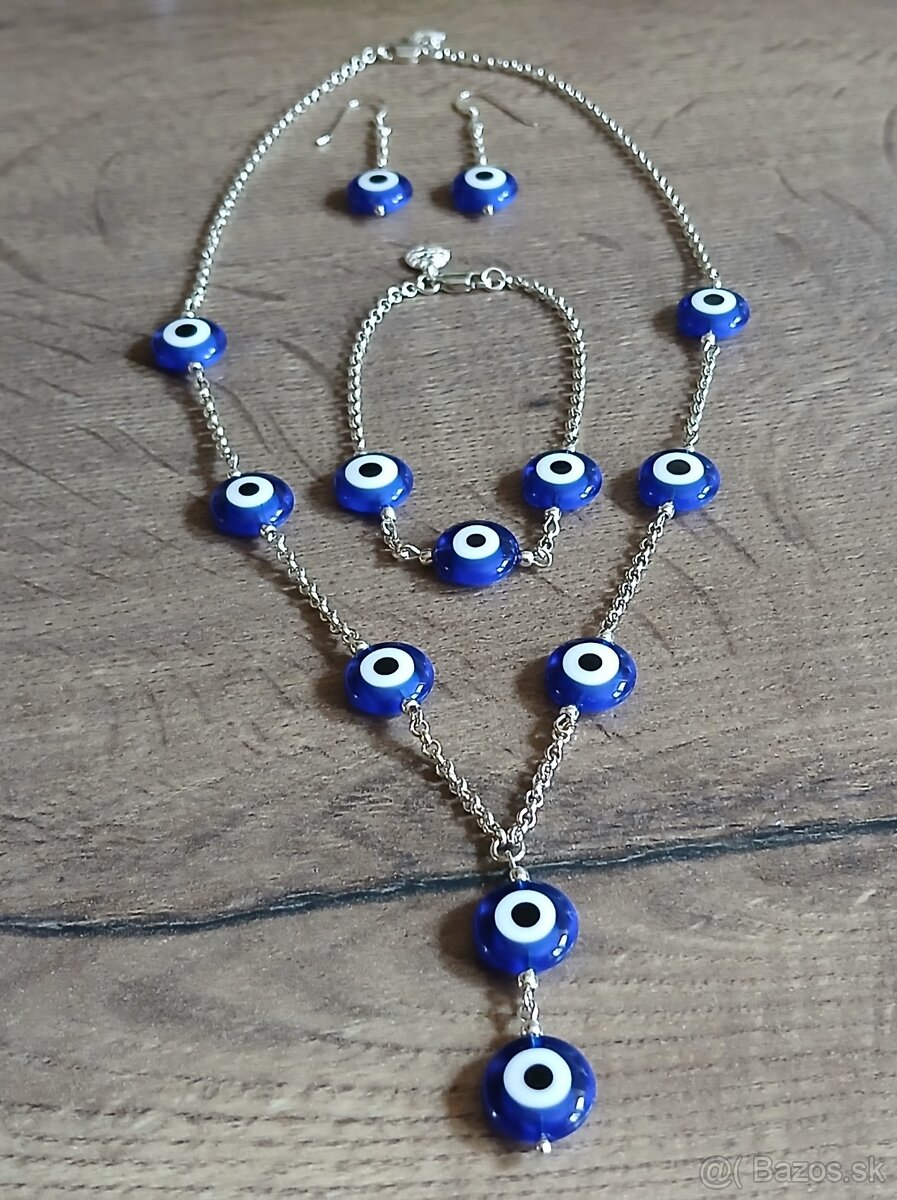 Predám čisto novú veľmi peknú jedinečnú sadu tureckých strieborných (925) šperkov s ochranným okom (retiazka + náramok + náušnice):