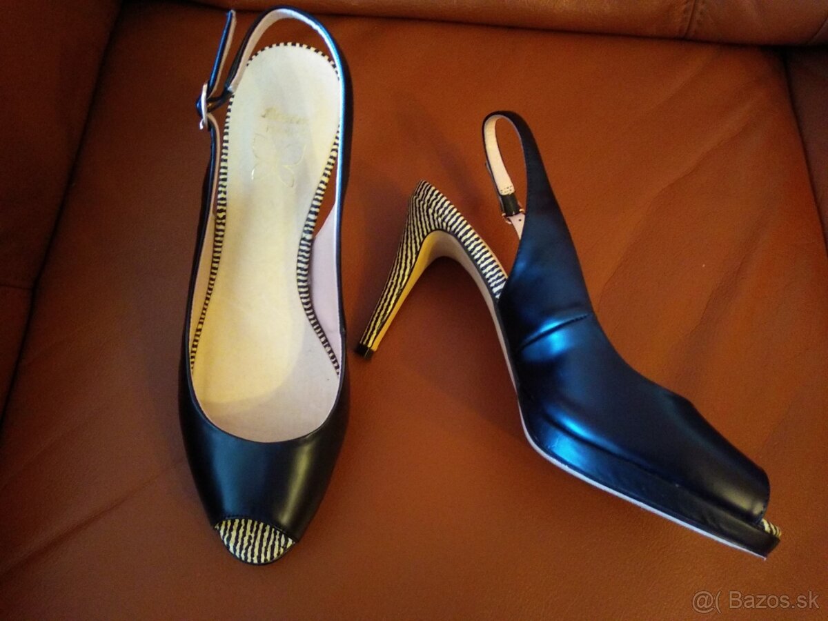 Predám krásne, elegantné na hodinku obuté čierne sandále zn. Baťa č. 40 s otvorenou špičkou a voľnou pätou na 9 cm vysokom podpätku.