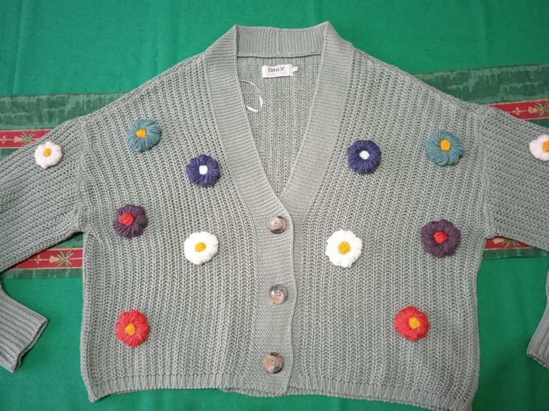 krásny svetrík, jemnej tyrkysovej farby, vytvorila som aj takéto ružičky, čo je v súčasnosti "in",
