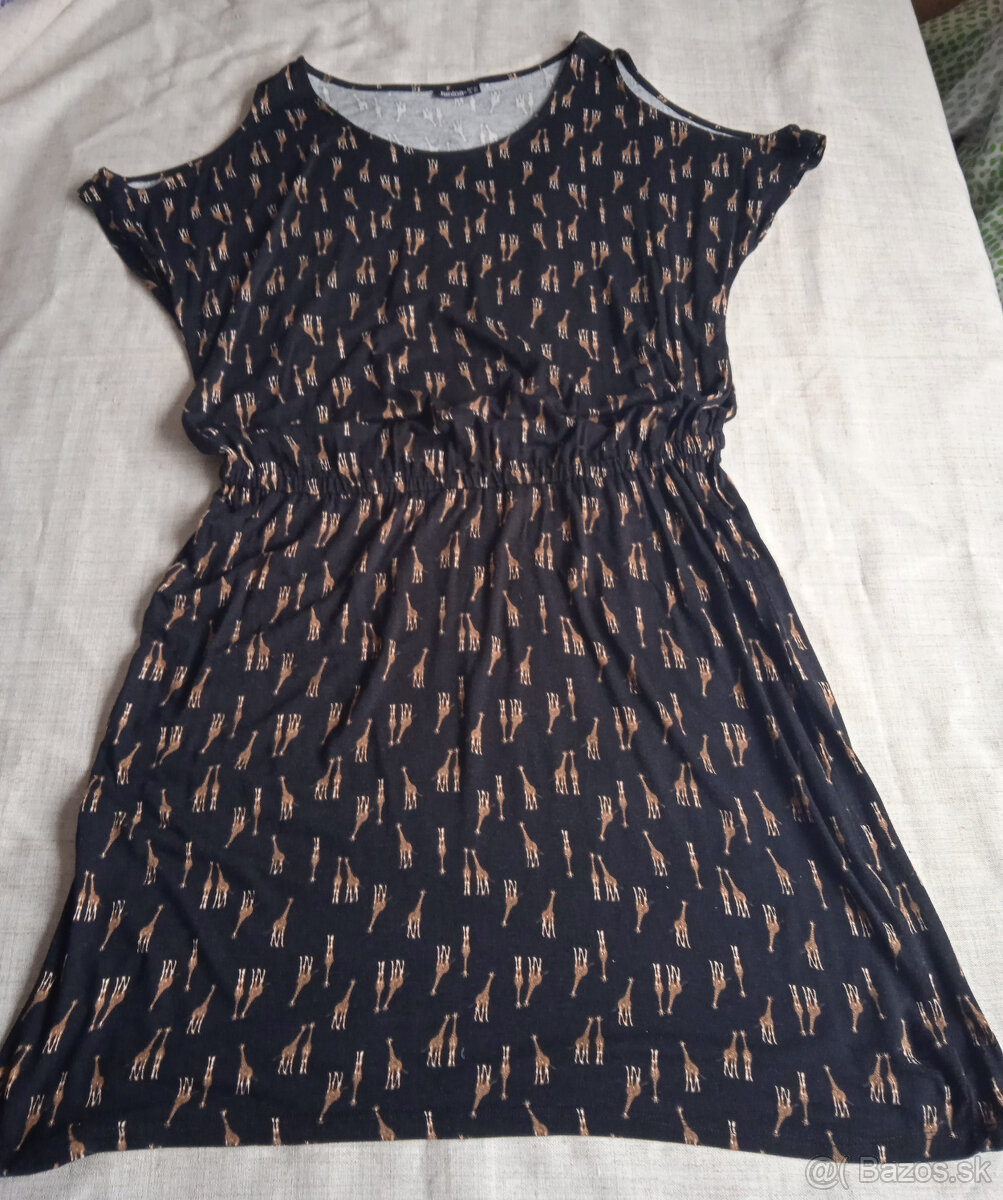 príjemný potlačený úplet, vykrojené ramená, miery: pod pazuchami 55x2, pás na gumku do 49x2, boky 60x2, dĺžka 103 cm, poštovné podľa sl. pošty
