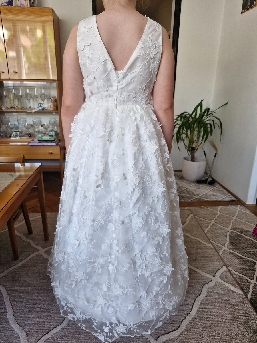 Dobrý deň, mám na predaj šaty na prijímanie z minulého roka. Šaty bolí oblečené len na fotenie ,lebo mi máme rovnošaty.Opasok by bol ku šatám grátis...