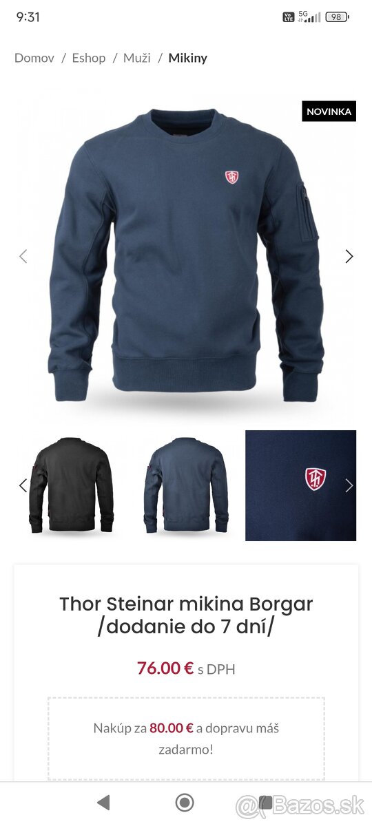 Predám novú pánsku mikinu Thor Steinar veľkosť 3XL