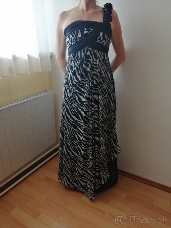 Predám spoločenské šaty,šifónové v čierno-bielom prevedení, v bezchybnom stave, Veľkosť S-M.Pri výške 170cm bez obuvi siahaju po zem, v pripade záujmu premeriam.Cena 29€+poštovné.