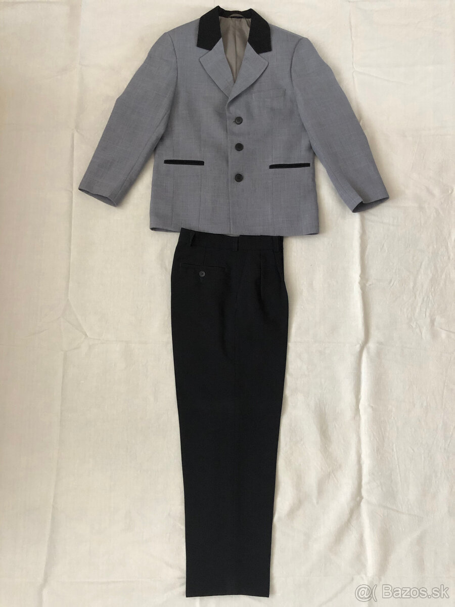 Chlapčenský oblek na sv.prijímanie - [27.2. 2026]Predám chlapčenský oblek na sv.prijímanie a iné príležitosti.Použitý 1x ako komplet. Nohavice viac krát,ale nemajú žiadne povrchové známky poškodenia, len na bielej látke v podšití drobné známky použitia.Komplet aj s vestou, košeľou a kravatou. Poľský výrobok. Veľkosti na fotografiách.