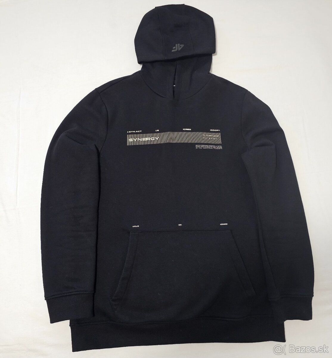 Čierna pánska mikina 4F, veľkosť L z príjemného a kvalitného materiálu. Mikina je úplne nová, nikdy nenosená. Predávam, pretože ju nenosím. Je dlhá 67cm, šírka na hrudníku je 62cm a dĺžka rukáva je 60cm. Mikina má štýlové dizajnové prvky v podobe nápisov a dizajnu na prednej strane a loga 4F na kapucni. Kupovaná za 50€.